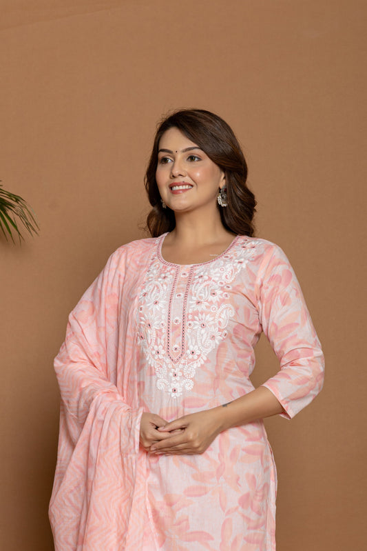Baby Pink Cotton Printed Suit Set