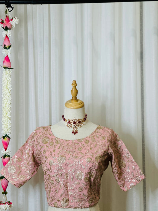 Zari Work Blouses - Baby Pink
