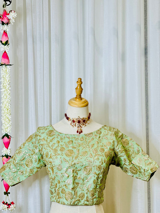 Zari Work Blouses - Mint Green