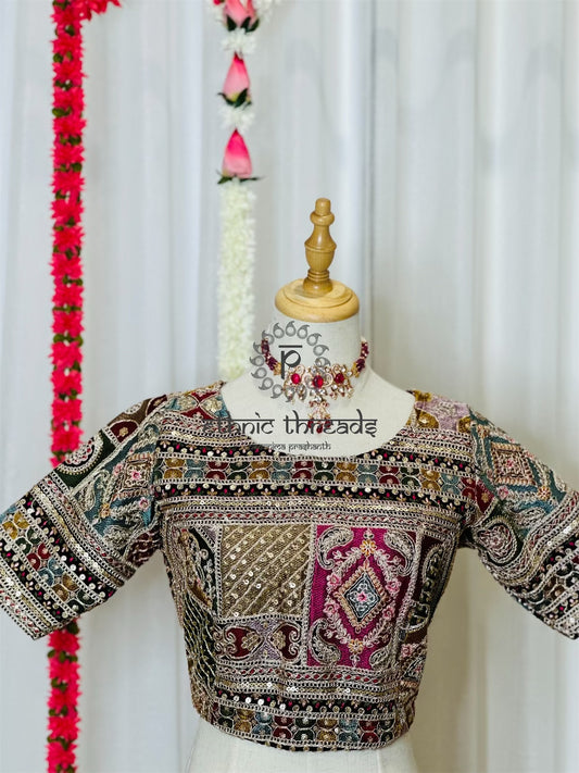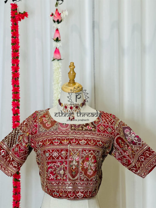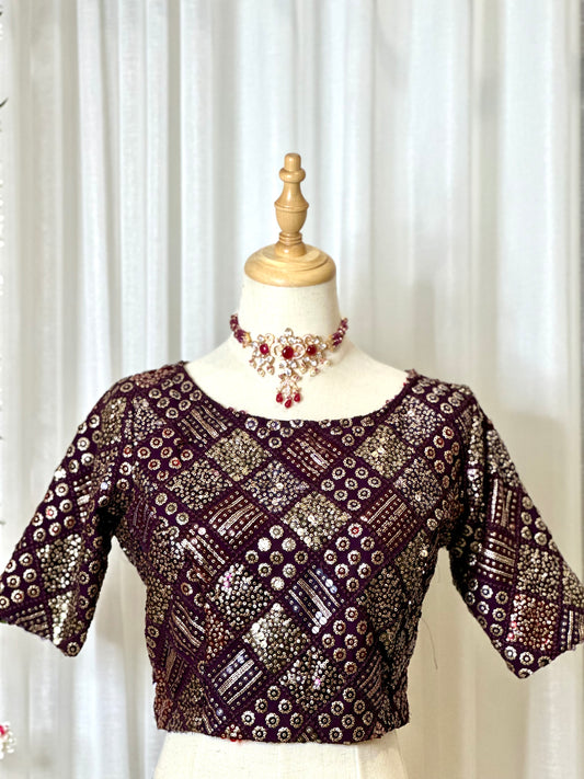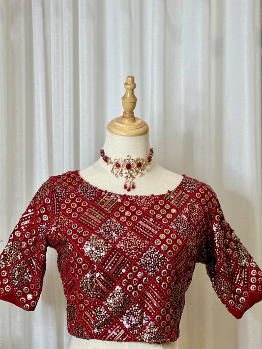 Sequins Work Blouses - Maroon