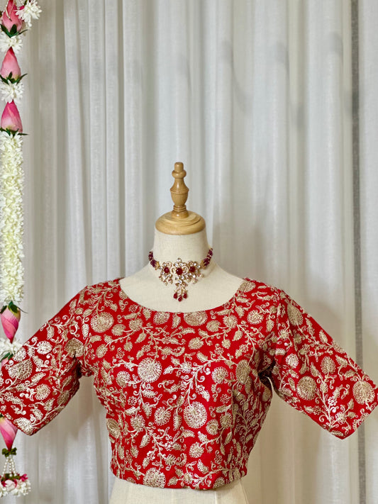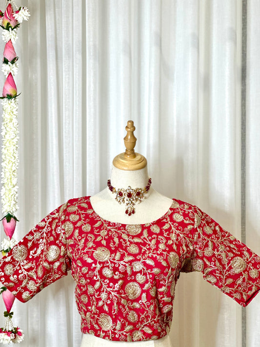 Zari Work Blouses - Red