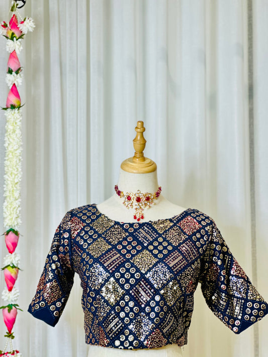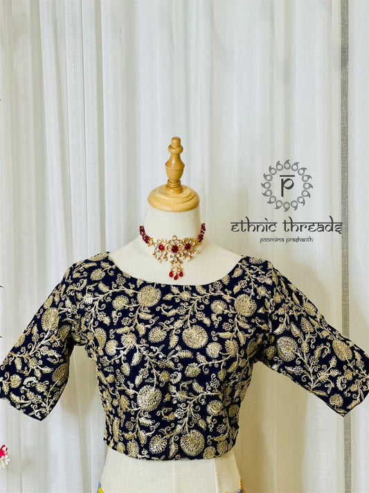 Zari Work Blouses - Navy Blue