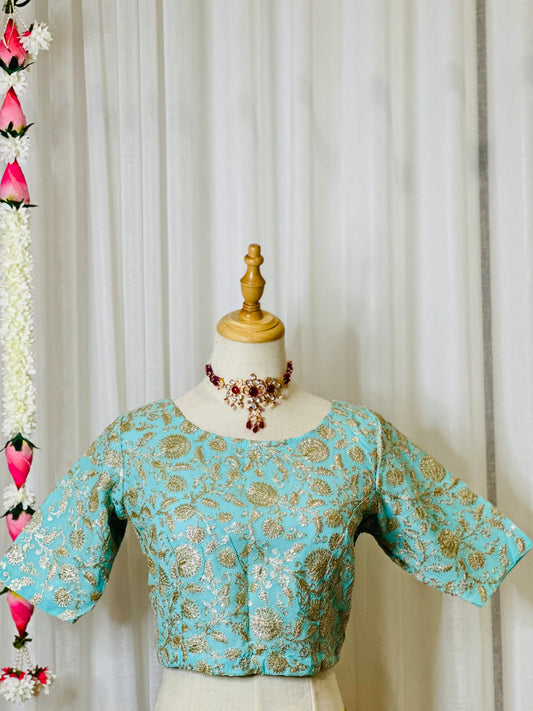 Zari Work Blouses - turquoise