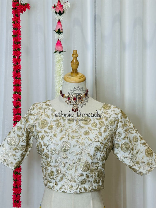 Zari Work Blouses - White Multi color