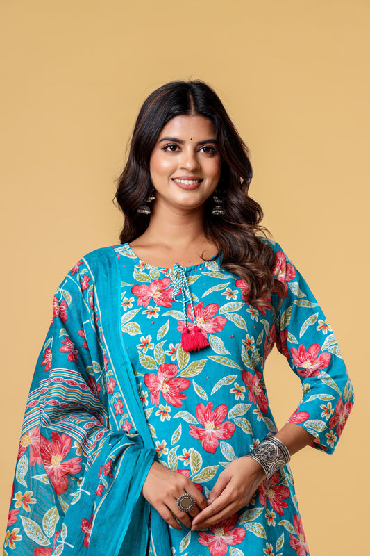 Blue Floral Block Printed Salwar Set