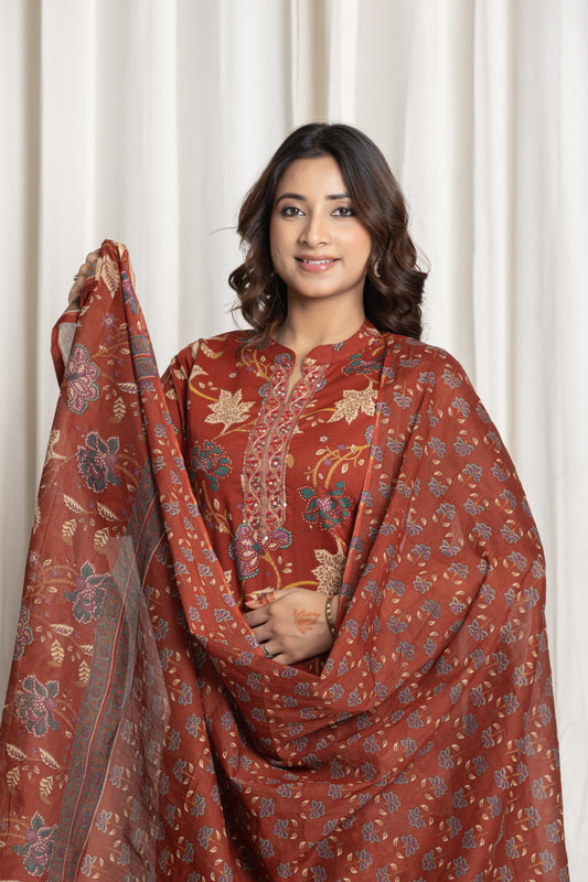 Rust Floral Block Printed Salwar Set