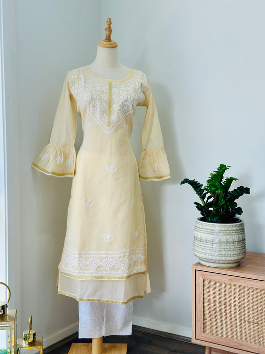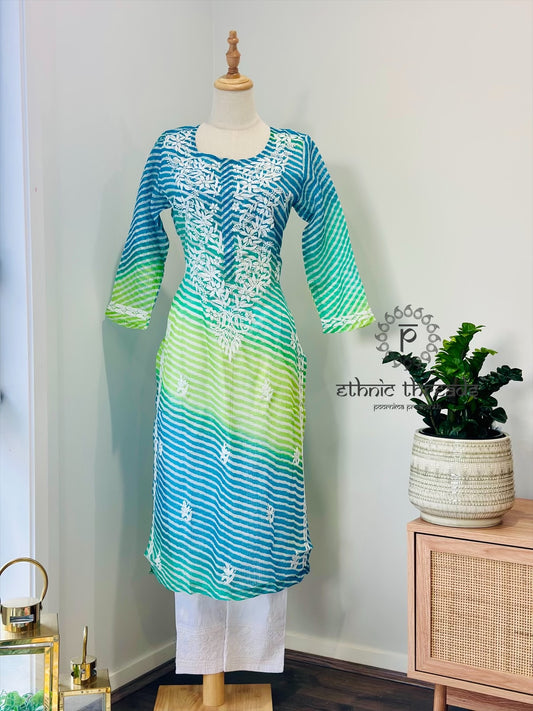 Chikankari Kurta In Tie-Dye Silk Cotton -Teal/Green
