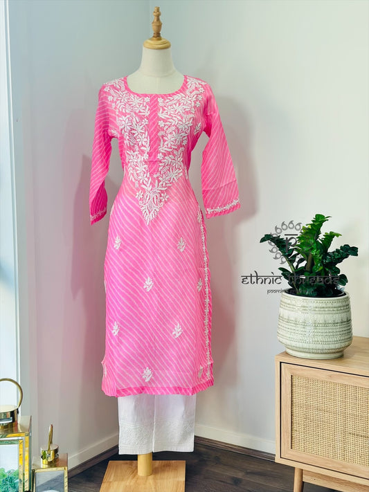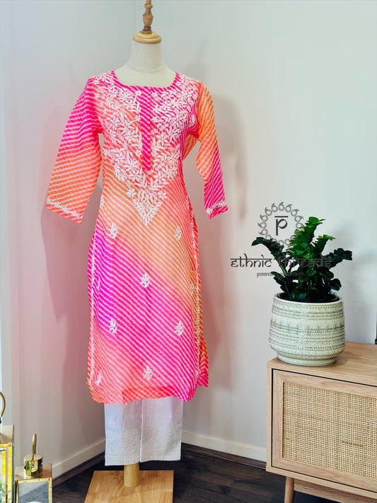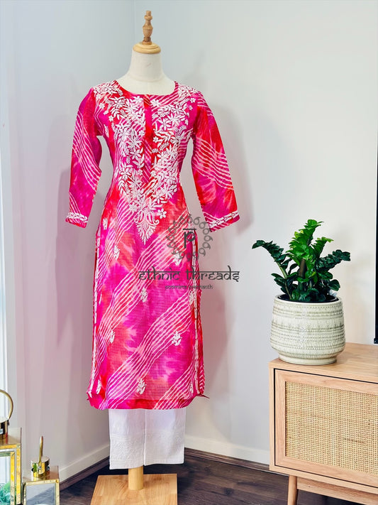 Chikankari Kurta In Tie-Dye Silk Cotton -Teal/Violet