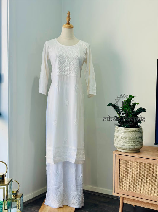 Lucknowi Chikankari Cotton Women's Flared Short Kurta - White