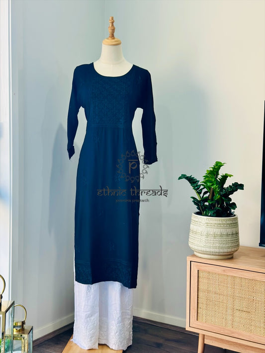 Chikankari Long Kurta In Muslin - Black