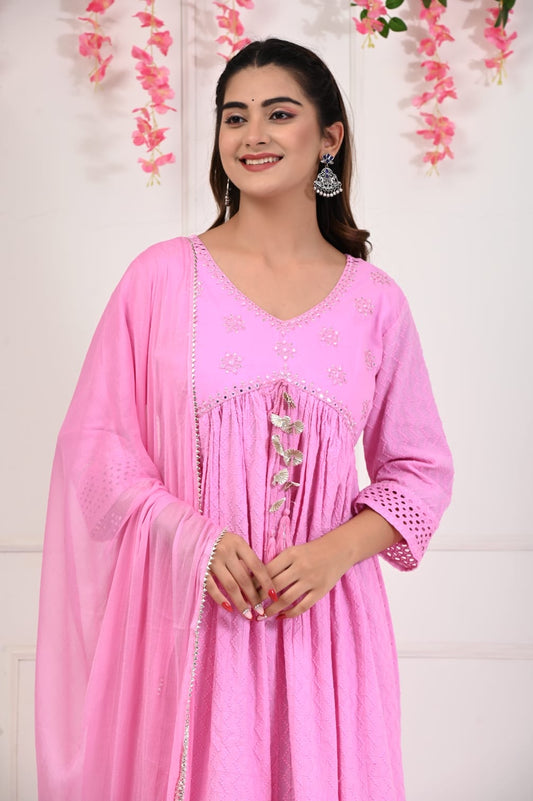Pink Embriodery Chanderi Anarkai Kurta
