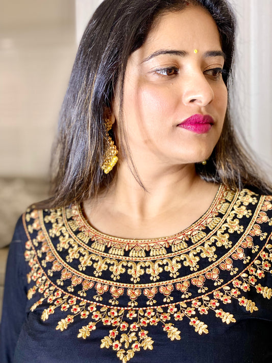 Embroidered Black Cotton Anarkali