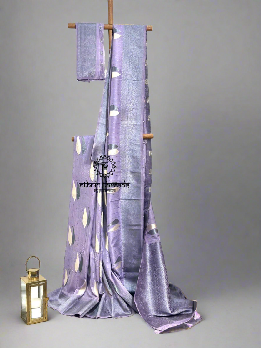 Grace meets tradition in this stunning Banarasi Crepe Saree, crafted to bring out effortless elegance. The smooth, flowy crepe fabric drapes beautifully, while the intricate zari-woven Banarasi borders add a touch of regal charm.