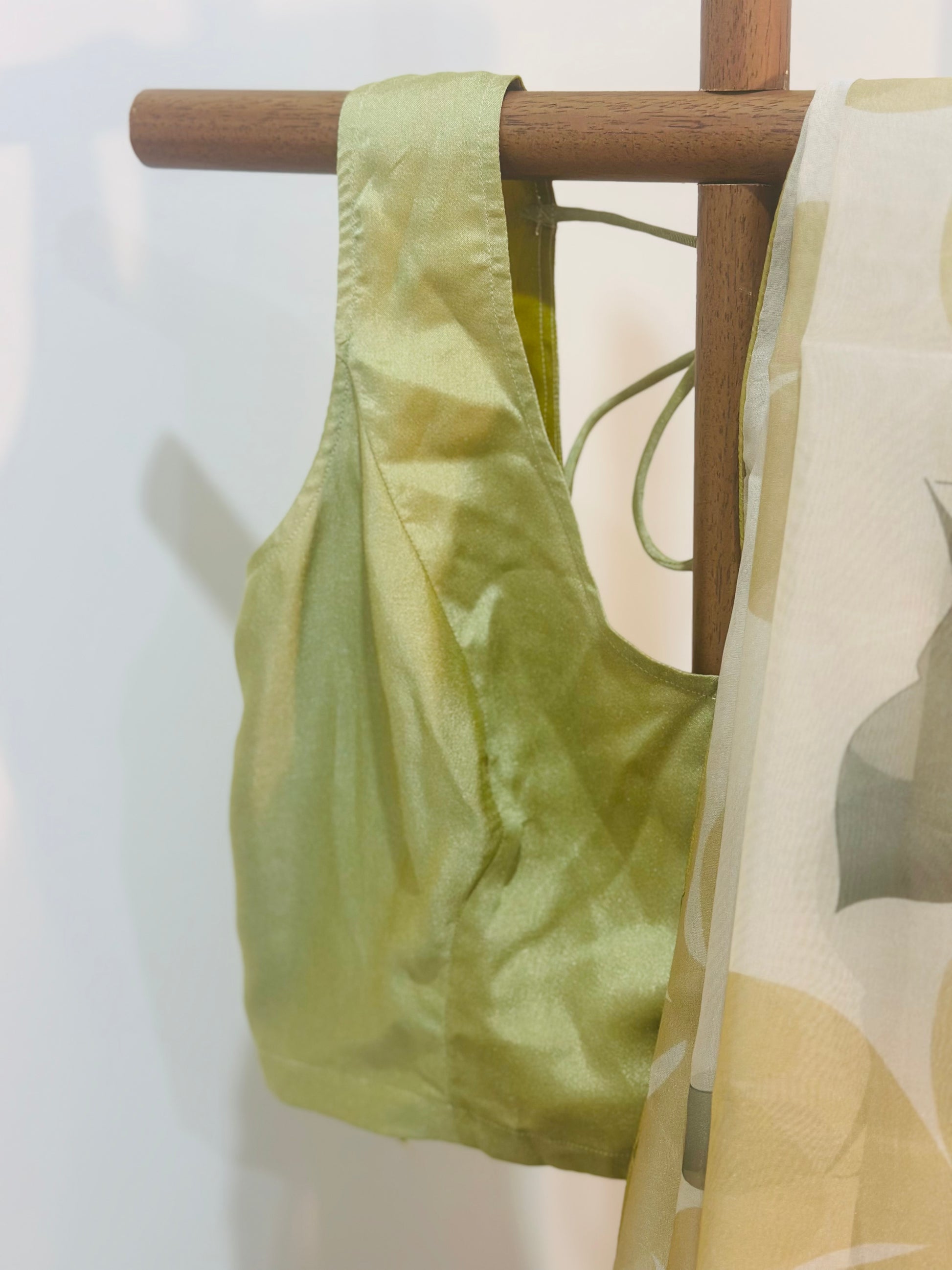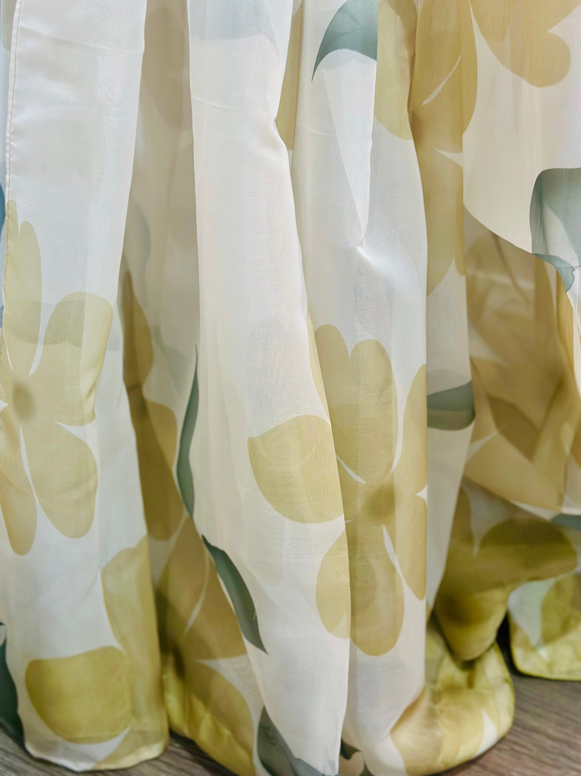 One of the Fine floral print soft Organza saree with pre-stitched Raw silk Blouse