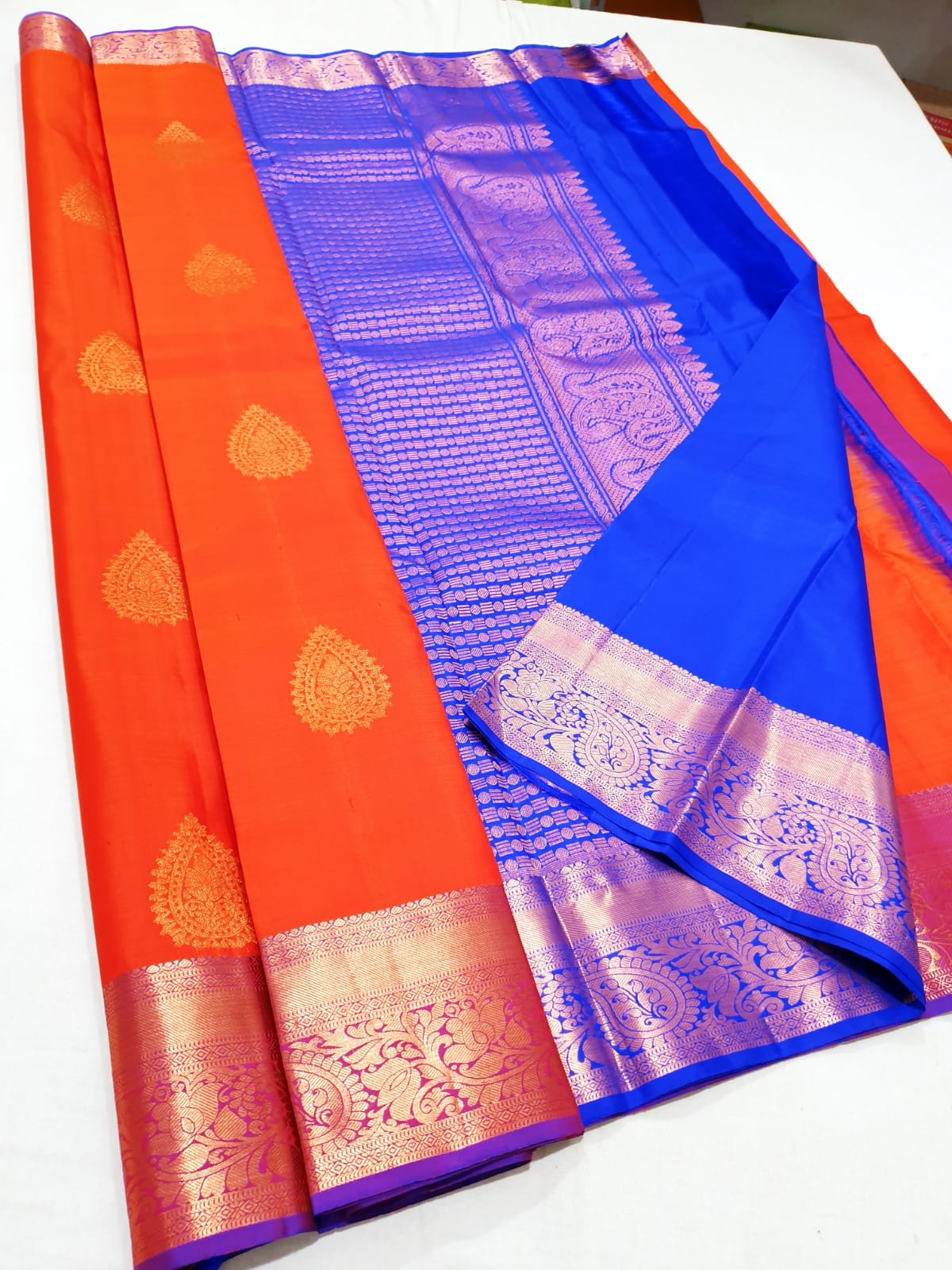 One of the finest collection of Kanchipuram silk sarees these Pure Silk Sarees in vibrant hues which steals your heart. Light weight and easy to carry and goes well for all occasions.