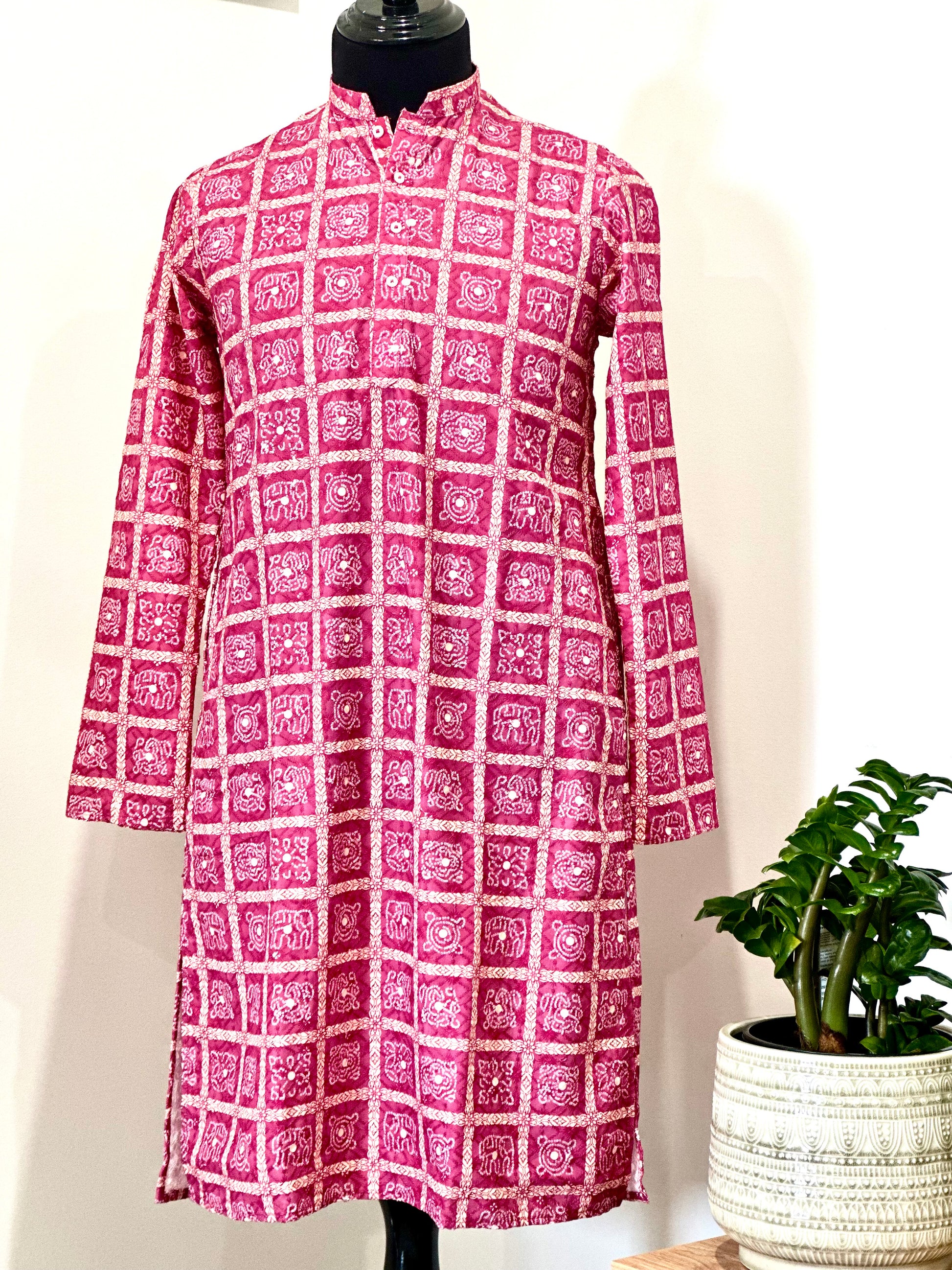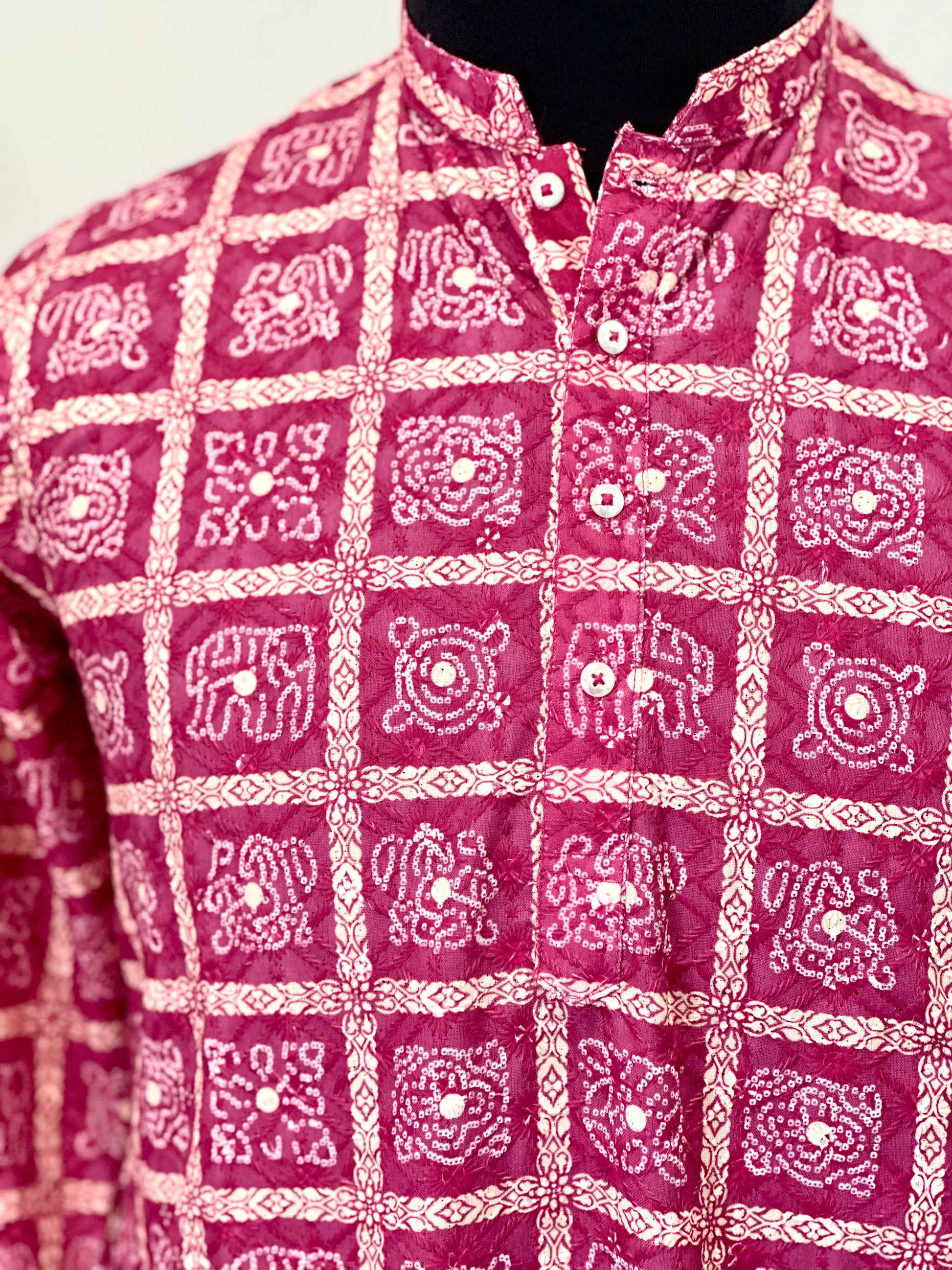 Printed Cotton Mens Long Kurta- Magenta