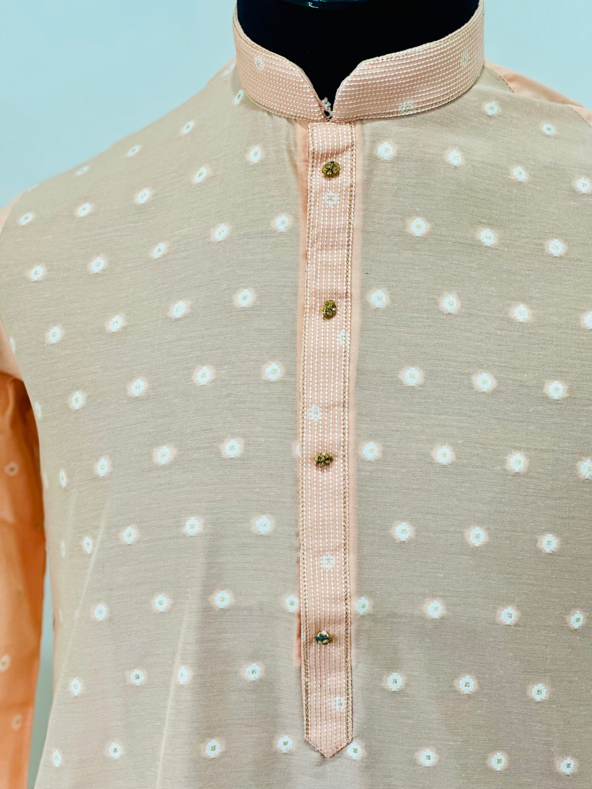 Printed Cotton Mens Long Kurta- Peach