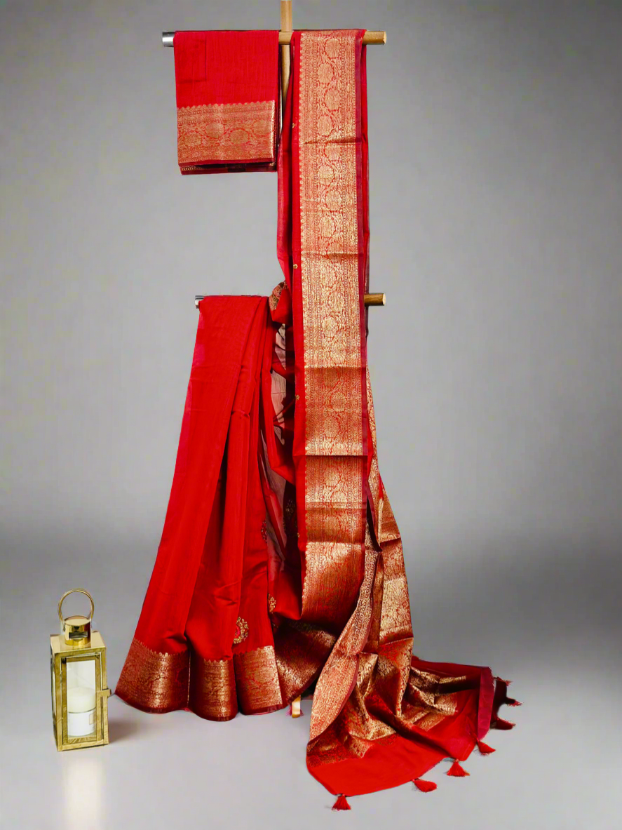 Silk Cotton sarees represent a captivating blend of pure silk and cotton intricately woven with Banarasi craftsmanship. The exquisite Banarasi weaves impart a touch of sophistication to the luxurious Silk Cotton fabric. Ideal for various occasions, these sarees are not only elegant but also effortless to carry.